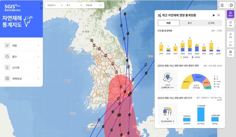 [제주교통복지신문 박상현 기자] 통계청은 우리 지역의 자연재해와 관련된 공간통계정보를 볼 수 있는 ‘자연재해 통계지도’를 구축 완료하여 통계지리정보서비스를 통해 4월 25일부터 서비스한다.