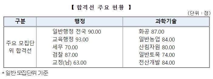 지난달 23일 치른 필기시험에는 행정직 5,371명, 과학기술직 866명이 합격했으며, 그중 271명을 선발하는 장애인 구분모집에는 148명이, 135명을 선발하는 저소득층 구분모집에는 187명이 필기시험에 합격했다.