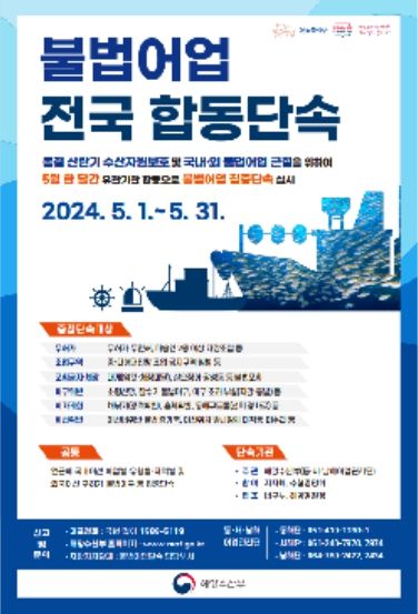 아울러, 해양수산부 어업관리단 소속 공무원과 지자체 어업감독공무원이 대상 어선에 교차 승선하여 단속 효과를 높이고, 육상 점검반도 확대하여 불법어획물의 유통, 판매 행위도 집중 단속할 예정이다.