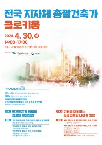 [제주교통복지신문 박상현 기자] 국가건축정책위원회과 국토교통부는 4월 30일 오후 2시 백범김구기념관(서울시 용산구)에서 약 100여명이 참석한 가운데 ‘전국 지자체 총괄건축가 콜로키움’을 공동개최한다.