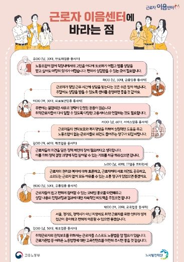 「근로자 이음센터」는 대국민 공모를 통해 명칭을 선정했는데, 소통과 참여를 통해 미조직 근로자의 권익을 보호한다는 의미이다.