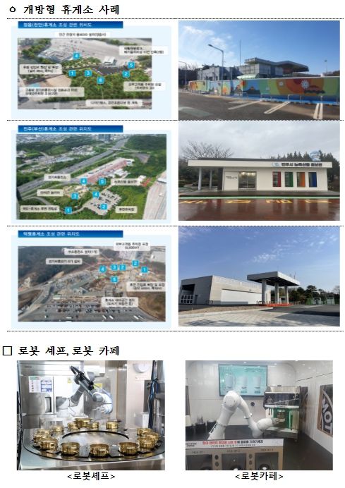 둘째, 휴게소의 기본기능 강화에 더해 개방형 휴게소 확대 등을 통해 지역과 함께하는 즐길 거리가 있는 휴게소를 조성한다.