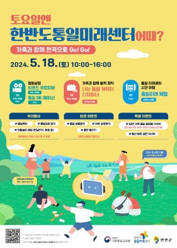 특히 이번에는 5월 가족의 달과 제12회 통일교육주간(5. 20.~26)을 맞이하여 ‘도전! 가족 통일골든벨 퀴즈’, ‘나는 통일캐릭터 디자이너’, ‘통일 애니메이션’ 및 북한인권영화 ‘비욘드 유토피아’ 상영, ‘통일 보물 찾기’ 등 다채로운 통일 관련 체험 프로그램을 마련했다.