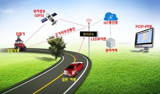 이 기술은 농업기계 부착용 단말기와 도로용 엘이디(LED) 주행 안내표지판으로 구성된다. 단말기와 안내표지판이 상호 근거리 무선통신 후 안내표지판에 농업기계 종류, 접근 거리 등 정보를 안내하는 방식이다. 이 정보를 본 일반차량 운전자는 속도를 줄이거나 주의를 기울여 사고 발생 확률을 낮추게 된다.