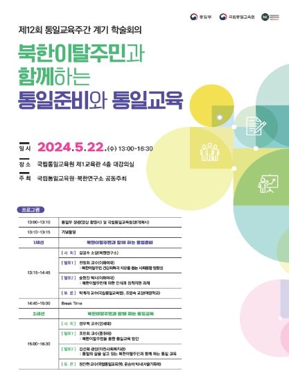 [제주교통복지신문 박상현 기자] 국립통일교육원은 5월 22일 북한연구소와 공동으로 「북한이탈주민과 함께 하는 통일준비와 통일교육 학술회의」를 개최한다고 밝혔다.