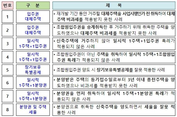 재개발・재건축 관련 다양한 양도소득세 실수사례를 통해 놓치기 쉬운 비과세 혜택, 알아두면 좋은 절세방법 등을 알기 쉽게 설명했다.