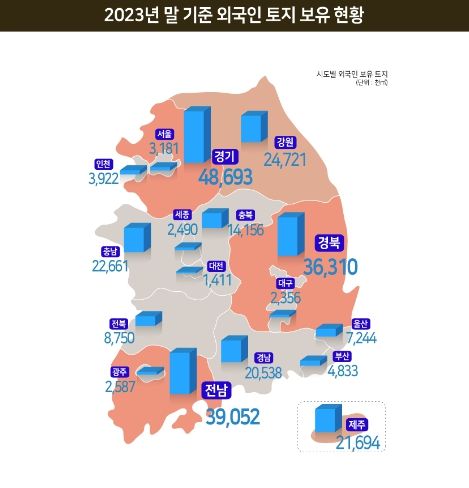 [제주교통복지신문 박상현 기자] 국토교통부는 ’23년 말 기준 외국인의 토지·주택 보유통계를 공표했다.