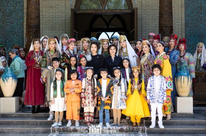 [제주교통복지신문 박상현 기자] 김건희 여사는 6월 14일 오전 쿡사로이 대통령궁 영빈관에서 우즈베키스탄 영부인인 '지로아트 미르지요예바(Ziroat Mirziyoyeva)' 여사와 친교 시간을 갖고 미르지요예바 여사가 직접 세심히 준비한 우즈베키스탄 전통 문화행사에 참석했다. 또한 한국에 6년 넘게 거주해 한국과 남다른 인연을 갖고 있는 미르지요예바 여사의 차녀인 '샤흐노자 미르지요예바(Shahnoza Mirziyoyeva)' 사회보장청 제1부청장도 김 여사의 방문을 환영하기 위해 동 행사에 깜짝 참석했다.