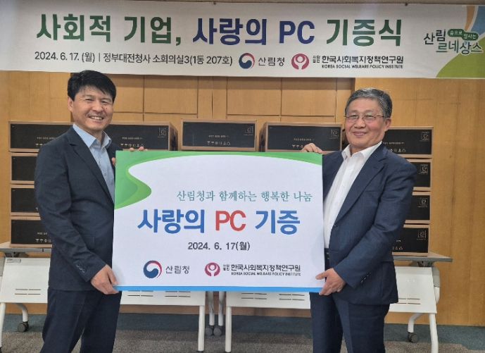 [제주교통복지신문 박상현 기자] 산림청은 정부대전청사에서 컴퓨터를 비롯해 총 239대의 전산기기를 사회적기업인 (사)한국사회복지정책연구원에 무상으로 기증하는 ‘사랑의 컴퓨터 기증행사’를 가졌다고 17일 밝혔다.