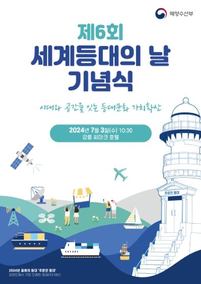 [제주교통복지신문 박상현 기자] 해양수산부는 7월 3일 10시 30분부터 강원특별자치도 강릉시 씨마크호텔에서 ’시대와 공간을 잇는 등대문화 가치확산’이라는 주제로 ‘제6회 세계등대의 날’ 기념식을 개최한다고 밝혔다.