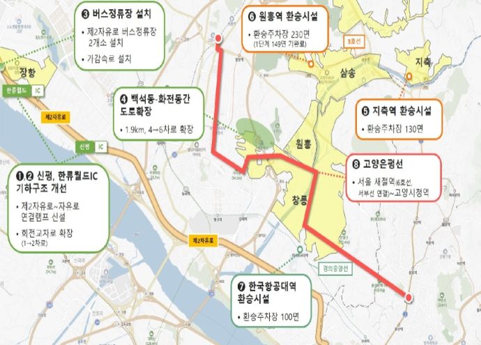 대광위는 고양시 및 LH 등 신도시 사업시행자와 함께 2월 27일 “신도시 광역교통개선 TF(이하 ‘TF’)”를 발족하여 5개월간 광역교통 사업과 관련된 갈등 조정·해소, 인허가 기간 단축 및 재원 집중투자 방안 등을 검토·협의했다. 고양시 9개 집중투자사업의 완공시기를 최대 12개월 단축할 수 있는 방안을 도출했다.