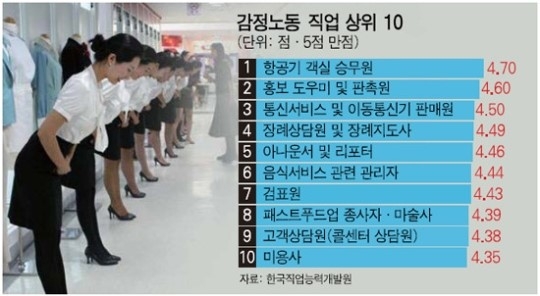 ▲ 감정노동 상위 직업군. 제주도내 일자리의 상당수를 차지하는 직군들이다.