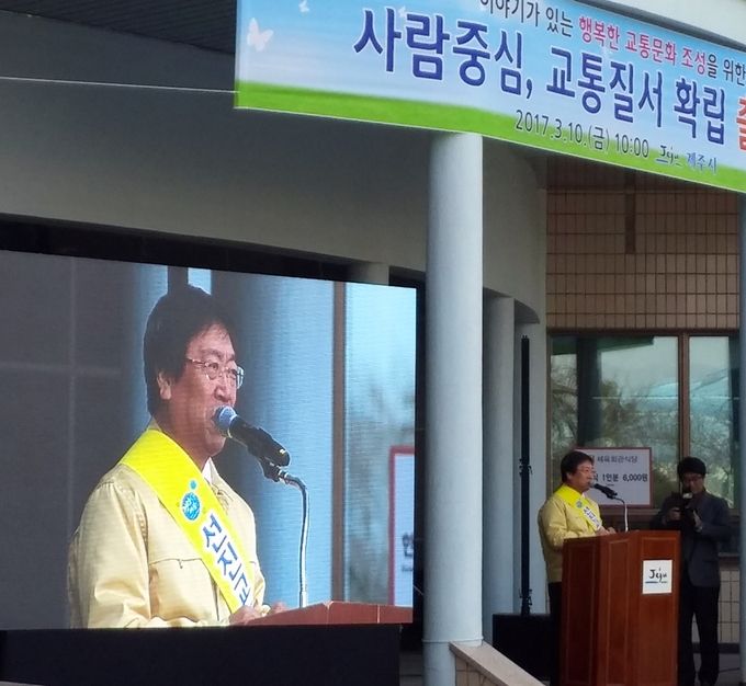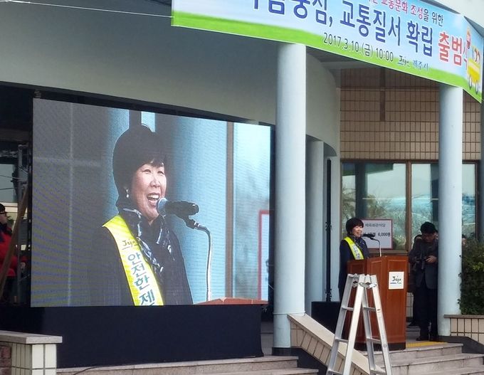 다음으로 연단에 오른 고경실 제주시장은 "대중교통체제개편 등 대대적인 교통문화 수술을 앞두고 많은 단체들이 힘을 합쳐줘서 감사하다"며, "앞으로 클린한 제주 교통문화를 만들기 위해 최선을 다할 것"이라고 덧붙였다.