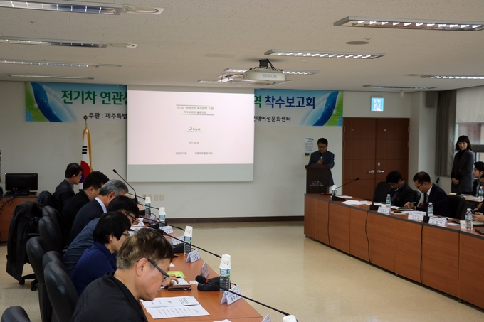 도내 전기차 보급률이 1%를 넘어 내년 초 2%대를 목표로 하고 있는 가운데, 이를 활용한 관련산업 육성과 일자리 창출을 위한 「전기차 연관산업 육성적책 마련 용역 착수 보고회」가 지난 6일 오후 열렸다.