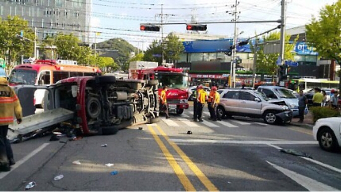 사고발생시 가능한 그자리 그대로 차량을 정지시키되 2차 사고가 일어나지 않도록 반드시 주의!!!