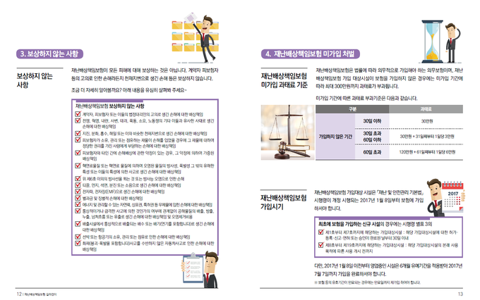 이에 이번 컬럼에서는 재난배상책임보험에 대한 가이드를 아래와 같이 첨부하니 의무가입대상에 해당되는 사업자의 경우 참조하여 반드시 가입하기 바란다.