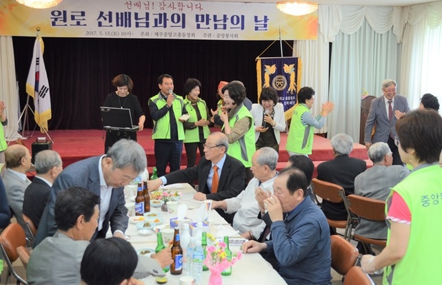제주중앙고 총동창회 중앙봉사회는 15일, 제주시 도남동 중앙고 동창회관에서 원로 동문 50여명이 참석한 가운데 ‘원로 선배님과 만남의 날’을 지난13일 개최했다고 밝혔다.