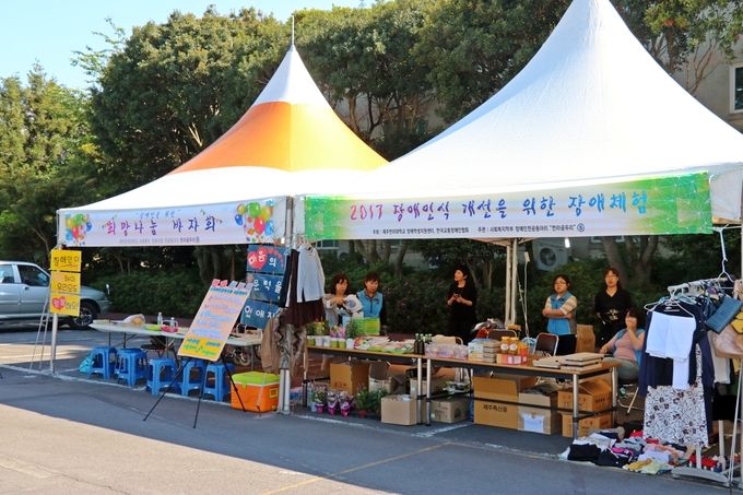 ▲ 장애인 성금마련을 위한 자선 바자회가 진행중이다