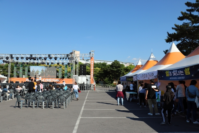 ▲ 축제 본무대 앞에 자리잡은 사회복지학과 주점