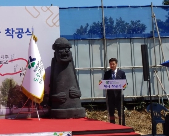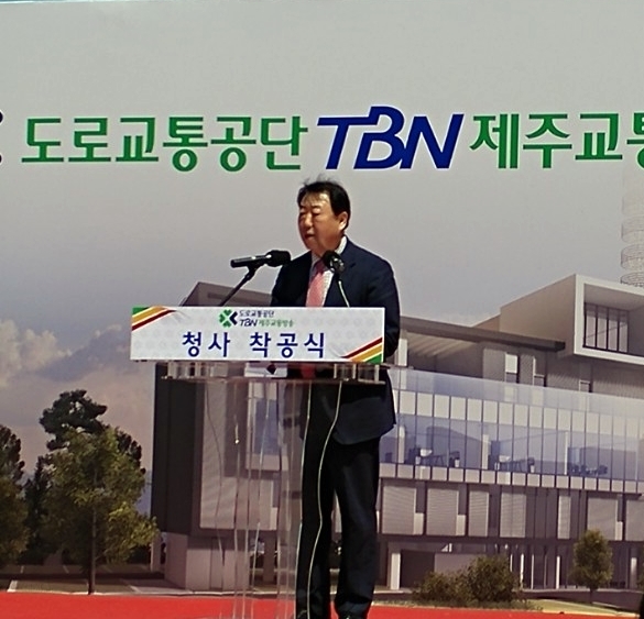 도로교통공단 신용선 이사장의 인사말을 시작으로 현병주 제주교통방송 운영지원부장이 신청사 착공에 대한 경과보고를 진행했다.