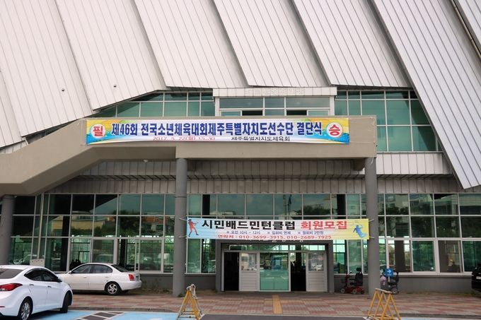 ▲ 선수단 결단식이 진행된 제주복합체육관