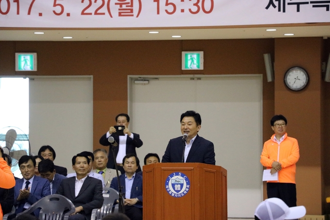 ▲ 제주인의 투혼을 주문한 이석문 교육감