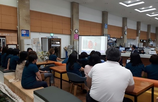 제주시 종합민원실은 23일, 직원들의 안전의식 고취를 위해 지난 22일 전직원이 참여한 가운데 자체 소방교육을 실시했다.