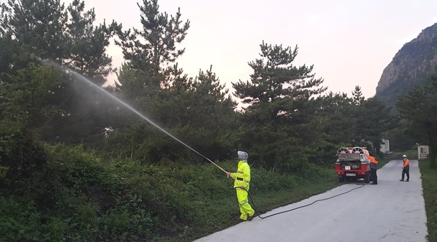 방제차량 3대와 연막분무기 12개, 방제인력 12명이 투입되는 이번 방제작업은 오는 6월 1일부터 8월 31일까지 650ha를 대상으로 진행된다.