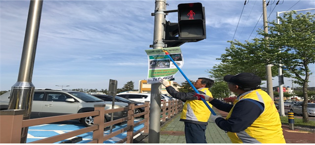 제주시는 지난 4월 27일부터 5월 10일까지 주요 도로변에 설치된 불법 분양 현수막에 대한 대대적인 단속을 실시한 결과 주요 도로변의 가로수, 전봇대, 가로등, 교통표지판 등 광고물 설치가 금지된 장소 및 물건에 설치된 불법 분양 현수막 415장을 현장에서 철거 조치했으며, 불법 분양 현수막을 부착한 한국토지신탁에 대해 과태료 3천3백만원 부과 예고를 했다고 26일 밝혔다.