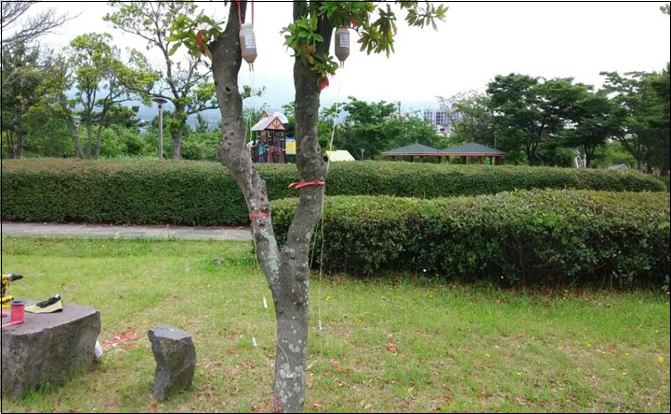 서귀포시에서는 공원과 체육시설 주변 담팔수 100여본에 약제를 투입하는 시범방제를 실시했으며 오는 7월말까지 나머지 수목에 대해서도 방제를 마무리하고 지속적으로 모니터링 할 계획이다.