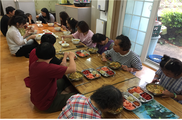 이날 봉사활동은 시설 청소 및 직원들이 회비를 모아 구입한 식재료를 이용한 요리 대접, 함께 소통하는 팔찌만들기 프로그램 시간 등으로 진행됐다.