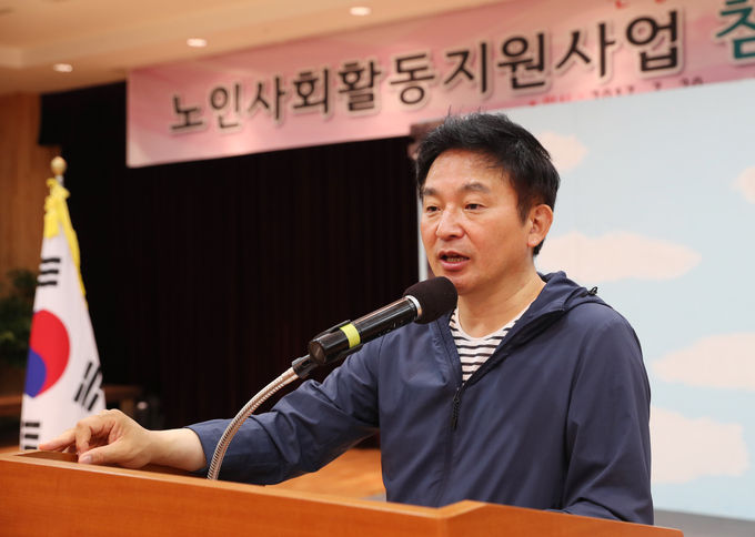 원 지사는 “경로당 도우미”, “노노케어”사업 노인일자리 참여자 450명을 대상한 교육에 앞서 최근 폭염주의보 발효로 노인 등 취약계층에 대한 “무더위 쉼터 운영”과 “혹서기 노인일자리 운영”에 최선을 다해줄 것을 당부했다.