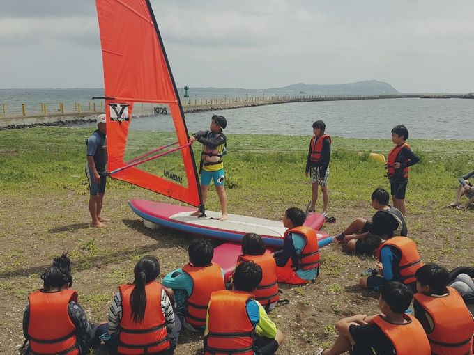 여름방학 스포츠캠프의 일환으로 운영되고 있는 윈드서핑교실은 학생들에게 다양한 수상 레포츠 활동을 체험할 수 있는 기회를 통해 건강한 몸과 마음을 가진 건강한 어린이로 성장하는 데 도움을 주기 위해 올해 4년 째 실시하고 있다.