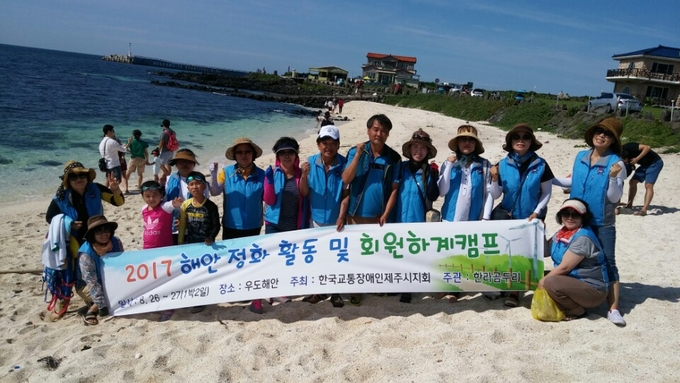 한국교통장애인협회 제주도협회와 한라대학교 장애인봉사동아리 한라곰두리가 2017 희망캠프 및 해변정화활동을 펼쳤다고 28일 밝혔다.