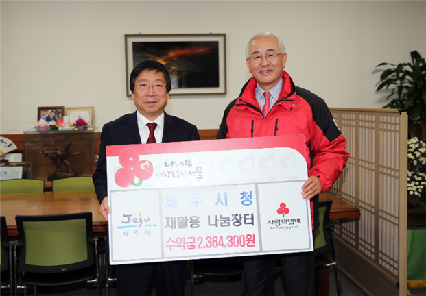 제주시는 지난 4일, 제주시민복지타운에서 열렸던 『제주시 재활용 나눔장터』 참여자의 기부금과 장터운영 수익금 2,364,300원 전액을 제주시사회복지공동모금회에 기탁했다고 밝혔다.