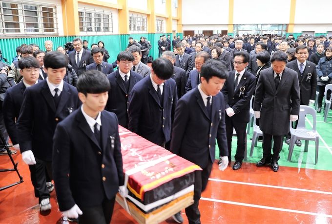 이날 영결식에는 故이민호 군의 유족을 비롯 학생과 학부모, 도교육청, 학교 관계자 등 300여명이 참석해 고인의 마지막을 지켜봤다.
