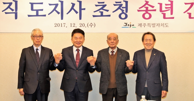 원희룡 제주도지사는 20일 오후, 메종글래드호텔 제주에서 이군보(제25대), 신구범(제29대, 31대), 김태환(제34, 35대) 전 도지사를 초청해 오찬 회동을 가졌다.