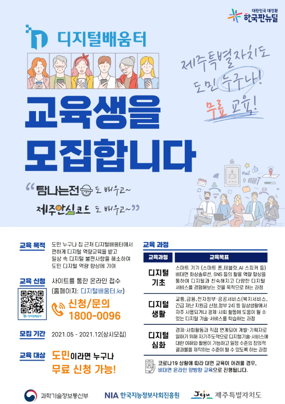 현재 디지털 역량강화 교육은 제주도와 과학기술정보통신부, 한국지능정보사회진흥원(NIA)이 공동으로 주관하고, ㈜KTcs가 교육수행을 맡아 진행하고 있다.