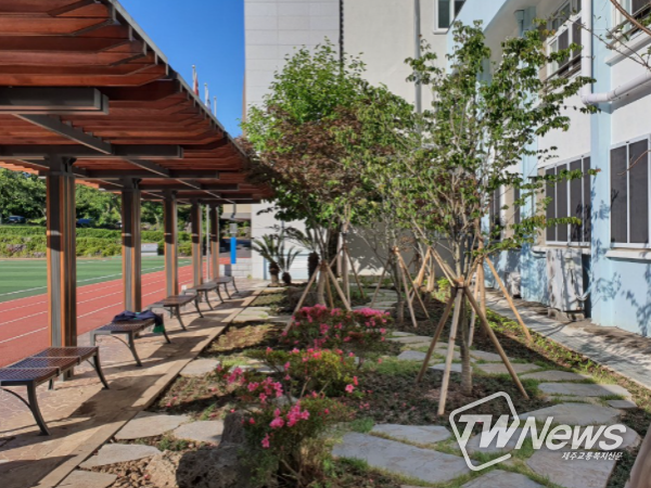 [제주교통복지신문 김현석 기자] 서귀포시는 학생의 친환경 학습공간과 지역주민들의 녹색 쉼터 제공을 위해 총사업비 1억 2천만원을 들여 남주중, 대정중학교에 학교숲 조성을 완료했다고 밝혔다.
