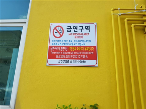 관련 법에 따르면 공동주택 거주 세대 중 2분의 1 이상의 동의가 있으면 공동주택의 전부 또는 일부를 금연구역으로 지정할 수 있다.