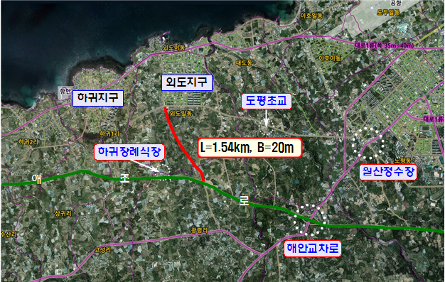 110억원의 예산이 투입되는 이번 사업을 통해 제주시는 서부지역의 애조로 접근을 쉽게 하고 교통체증이 심각한 해안교차로, 월산정수장 사거리 일대의 교통량 분산에도 기여할 것으로 기대하고 있다.