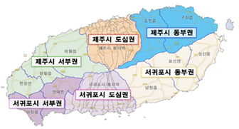 이번 계획에서는 제주도를 6개 도시재생 권역으로 세분하여 권역별 쇠퇴도를 기준으로 활성화지역을 지정했다.