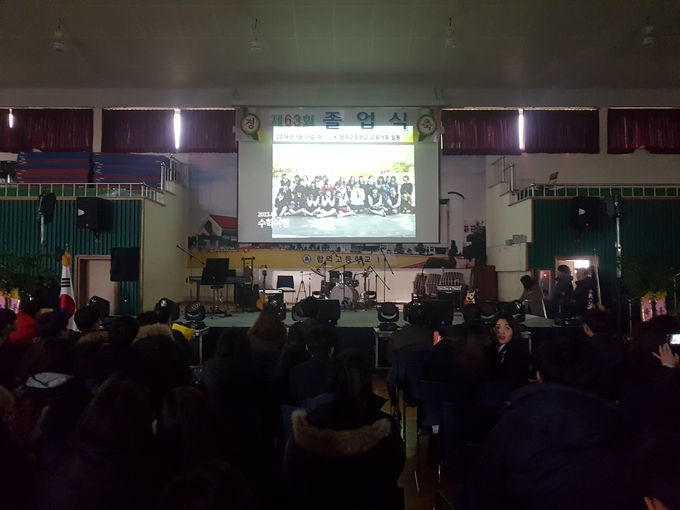 지난 31일 오전 백파문화관에서 진행된 함덕고등학교 63호 졸업식은 지금까지 형식적으로 진행되어 왔던 기존의 졸업식에서 벗어나, 새로운 기획으로 재학생과 학부모들도 함께 즐기는 축제형 졸업식으로 진행됐다.