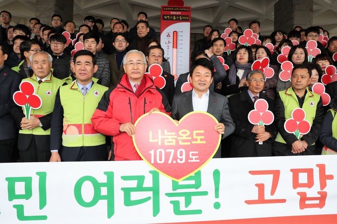 제주사회복지공동모금회가 추진하는 ‘희망2018 나눔캠페인’ 모금 결과 목표액 44억1,500만원을 초과한 47억6,500만원이 모금돼 사랑의 온도탑이 107℃까지 상승했다.