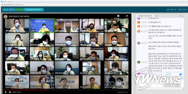 특히, 이번 회의에서는 도교육청이 자체적으로 개발한 원격교육시스템 ‘샐비온’(Salvion)이 활용됐다. 화상회의 시스템 ‘줌(ZOOM)’과 ‘샐비온’(Salvion)을 연동해 참석자들이 실시간으로 질의와 의견을 나눌 수 있도록 했다.