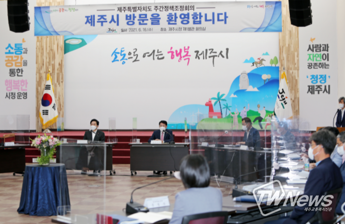 [제주교통복지신문 김현석 기자] 16일(수) 오전 9시, 도지사 주재로 제주도 주간정책 조정회의를 제주시청에서 개최했다.