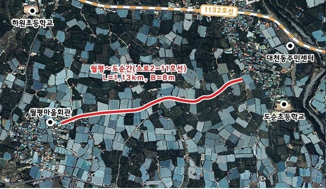 월평과 도순마을을 연결하는 마을안길은 월평 마을회관에서 대천동 행정복지센터를 연결하는 주요 도로지만 도로 폭이 4m로 협소하여 차량 교행이 어려웠으며, 인근마을 지역의 농사차량 및 출퇴근 차량이 많아 지역주민들의 통행이 어려웠다.
