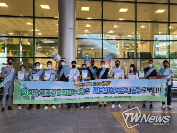 [제주교통복지신문=박희찬 기자] 제주시교육지원청은 2021학년도 제주시학교운영위원장협의회(회장 고덕훈)에서 지난 22일(화) 오후 5시부터 6시까지 제주국제공항 3번 출구 앞에서‘코로나19 감염 예방 캠페인’을 전개했다고 밝혔다.