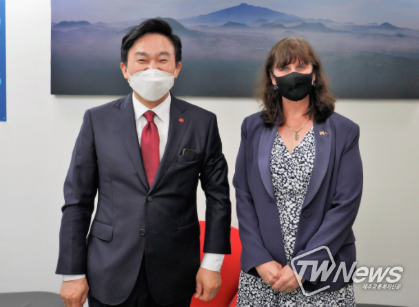 원희룡 제주도지사는 지난 22일 오후 3시 30분 제주도청 서울본부 회의실에서 캐서린 레이퍼(Catherine Raper) 주한 호주 대사와 면담하고 자연, 도시 경관 관리 및 그린에너지 등 다양한 분야 교류 협력 방안을 논의했다.