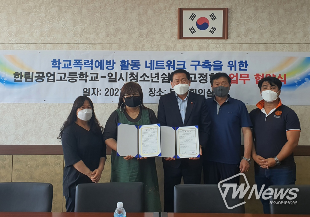 [제주교통복지신문=박희찬 기자] 한림공업고등학교는 지난 6월 23일 제주도일시청소년쉼터(고정형)와 함께 학교폭력 예방 활동을 위한 업무협약(MOU)을 체결했다.